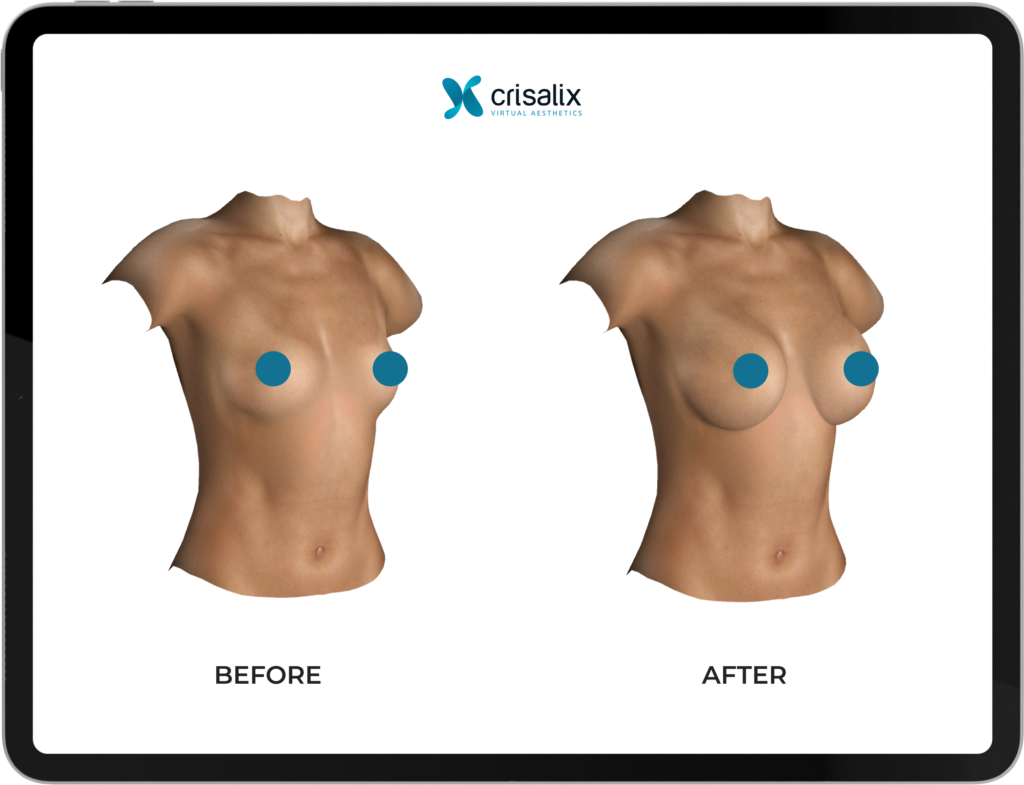 Durante o atendimento, o Dr. Guilherme Cunha utiliza essa tecnologia para realizar a simulação personalizada da cirurgia mamária, mostrando como o resultado pode ficar no seu corpo.